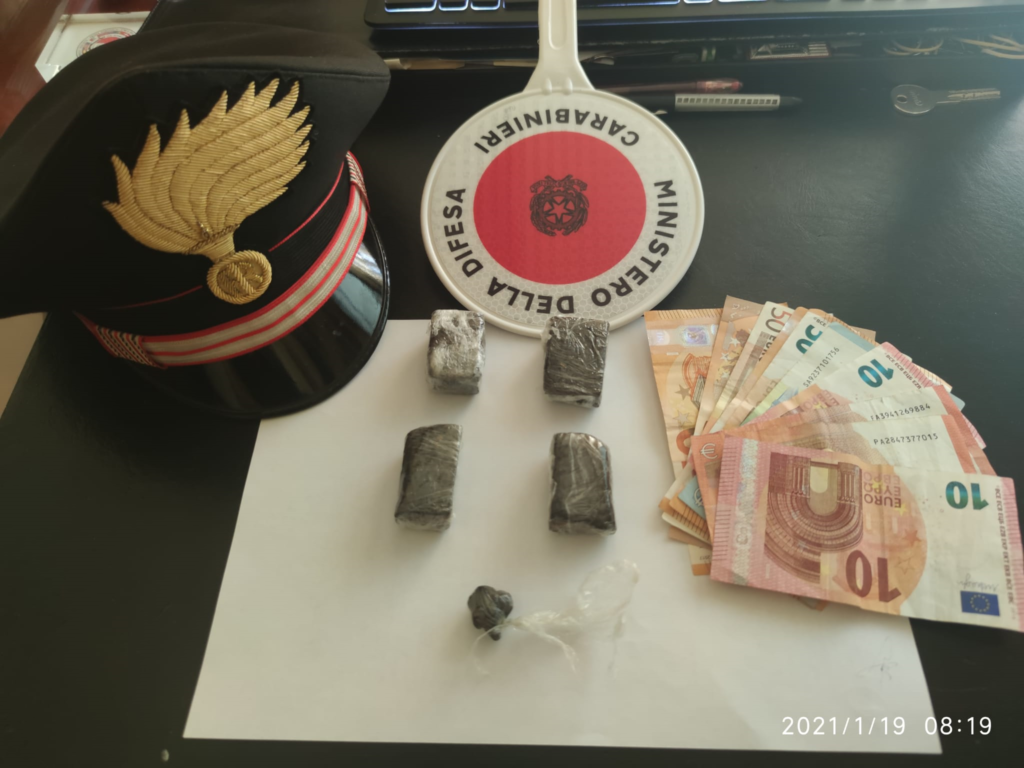 Sono le ore 22.00 quando i Carabinieri di pattuglia della Stazione Carabinieri di Capurso (BA) notano un’autovettura che è appena passata a semaforo rosso. La inseguono e la fermato per contestare al conducente la violazione appena commessa. Al momento del controllo, i militari si accorgono che M.N. 33enne, noto alle Forze di Polizia, è residente a Bari e che pertanto ha violato anche le norme di contenimento della pandemia prevista dall’’ultimo DPCM. Ma i Carabinieri non si fermano alla sola contestazione amministrativa delle predette violazioni! La presenza della persona in Capurso è sospetta, anche per via dei suoi precedenti penali e si decide quindi di procedere alla perquisizione personale e del veicolo su cui questi viaggiava. L’intuito dei Carabinieri, ancora una volta, si è rivelato affidabile. L’accurata ispezione del mezzo ha permesso di rinvenire nella disponibilità del controllato quattro pezzi di hashish per un totale di 100 grammi e il danaro, circa 300 euro, presumibilmente provento dell’attività illecita posta in essere dall’uomo. Per lui sono scattate le manette ed è stato sottoposto agli arresti presso il proprio domicilio a disposizione dell’Autorità Giudiziaria.