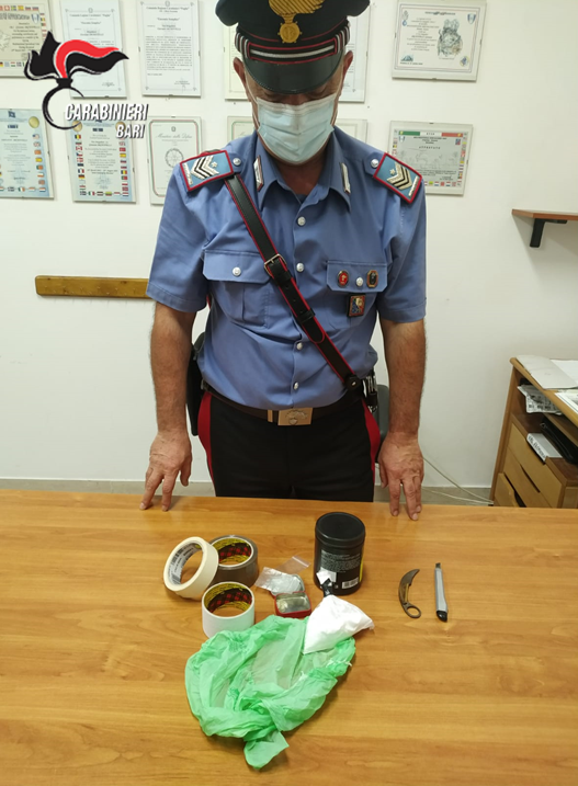 La cocaina rinvenuta nei prossimi giorni verrà analizzata dal laboratorio sostanze stupefacenti del Comando Provinciale Carabinieri di Bari.