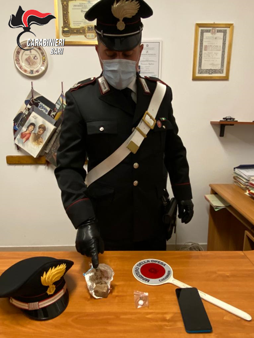 I militari della Stazione di Putignano, nei giorni scorsi, hanno messo in atto un dispositivo di controllo del territorio finalizzato ad un capillare controllo lungo le arterie stradali che conducono al centro Putignanese, in modo da prevenire la commissione di reati in genere. Nei controlli è incappato il giovane nocese che, alla guida dalla sua autovettura aveva deciso di recarsi nel quartiere San Pietro Piturno. Notata l’autovettura, una volta allontanatasi dal quartiere gli operanti hanno deciso di seguirla e sottoporla a controllo.
