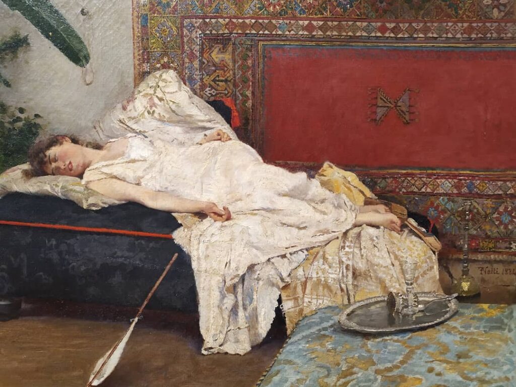 La Pinacoteca “Corrado Giaquinto” contribuisce al percorso con cinque opere di grande valore storico e artistico, provenienti dalla sua collezione permanente: quattro tele di Francesco Netti, figura centrale dell’Ottocento italiano, che testimoniano con raffinata profondità l’evoluzione del gusto, del pensiero e delle tecniche pittoriche del suo tempo (La lettura, Nuda sul letto, La Siesta, In campagna) e un’opera di Ignacio de Leon y Escosura, (Dichiarazione d’amore) pittore spagnolo noto per le sue composizioni storiche e di genere, che arricchisce il dialogo internazionale con uno sguardo che unisce Spagna, Italia e Francia nella comune tensione verso l’innovazione espressiva.