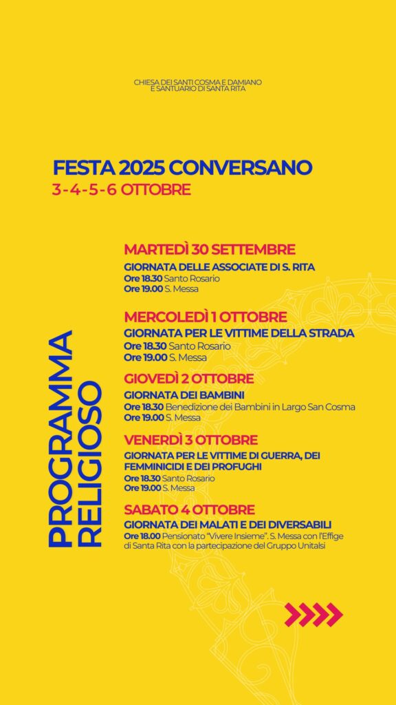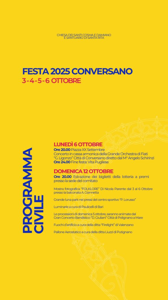 speciale devozione che Conversano nutre per la “Santa degli impossibili”. Inoltre, la festa si
