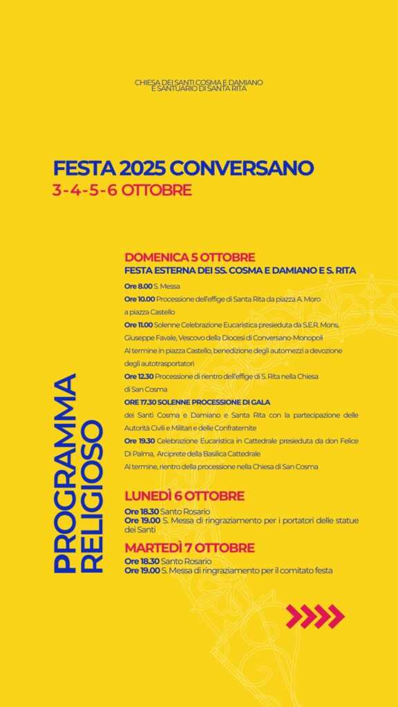 Conversano celebra i Santi Cosma e Damiano e Santa Rita: tra fede, storia e tradizione