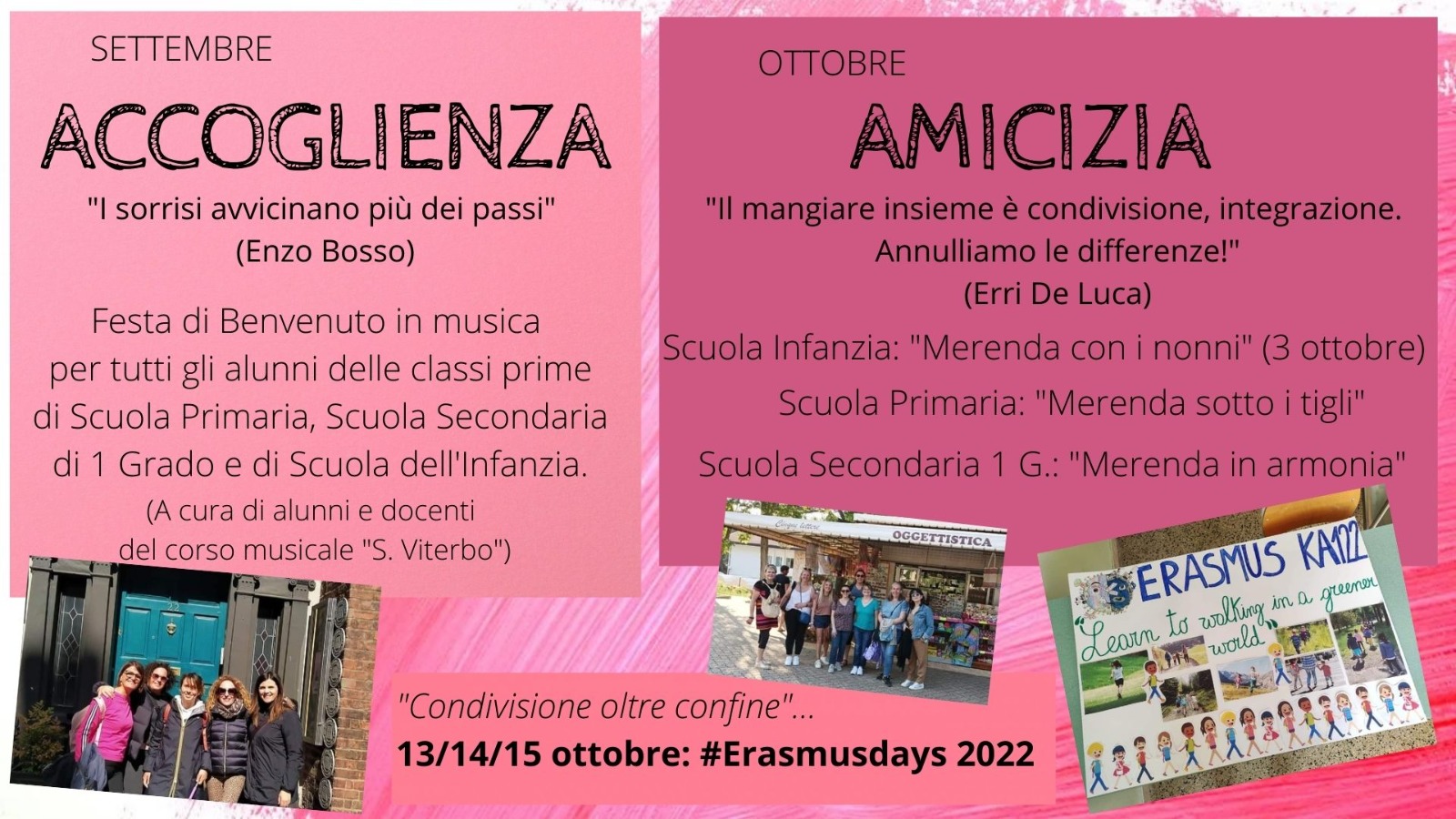 La condivisione sarà anche oltre confine nei giorni 13/14/15 ottobre con l’Erasmusdays 2022”.