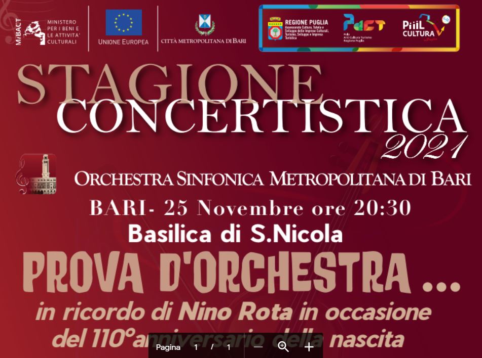 L’iniziativa rientra nel ciclo di concerti dedicati a Nino Rota in occasione del 110° anniversario della nascita.
