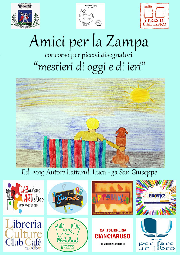 La ASD TRE FULTURI, in collaborazione con I PRESIDI DEL LIBRO e con il patrocinio del COMUNE DI MOLA DI BARI, ha indetto e organizzato la 3^ edizione del concorso “Amici per la Zampa”, riservato agli studenti delle scuole elementari.