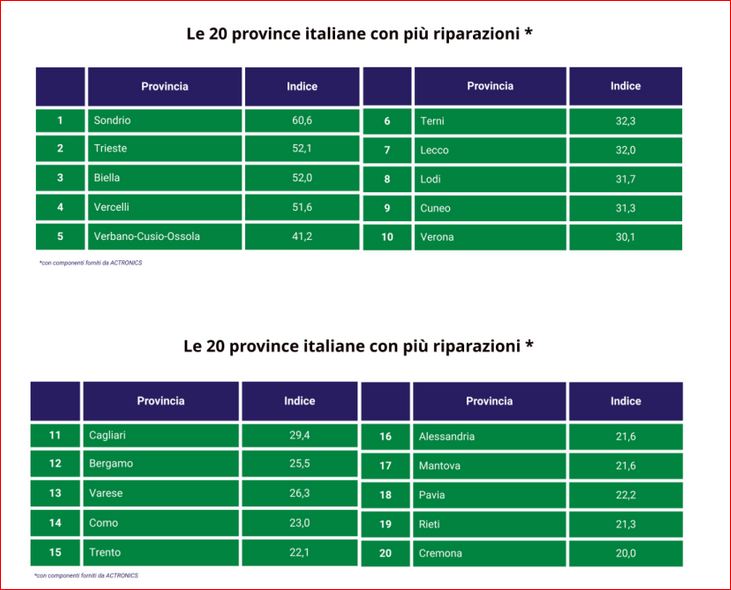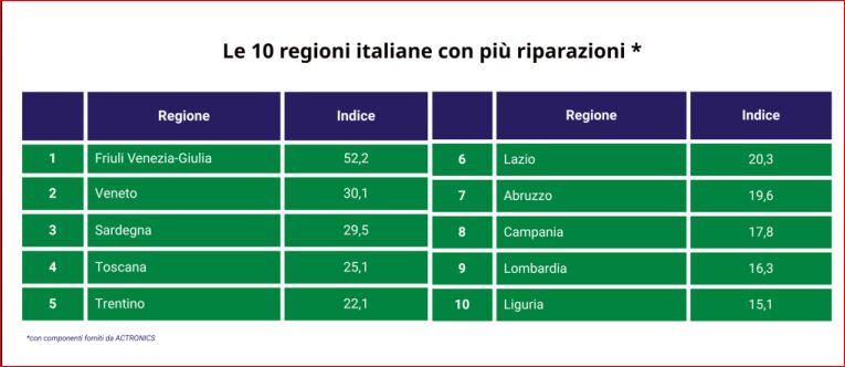 Una sorpresa guida la classifica delle regioni con più riparazioni