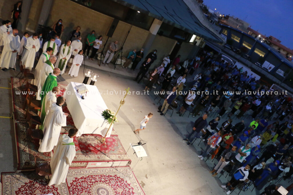 CONVERSANO. È stata una bella festa di comunità il compleanno di Don Giuseppe Goffredo. Dopo la messa con i suoi parrocchiani, celebrata il 13 luglio nel cortile gremito della Maris Stella, è stato raggiunto a sorpresa dal Vescovo Don Giuseppe Favale. Quarant’anni sono un bel traguardo in un cammino di fede percorso con uno sguardo rivolto alla comunità che significa accoglienza, amore, solidarietà. “Loderó il Signore per tutta la vita e canterò inni al mio Dio”. Ha detto Don Giuseppe, abbracciato dai sorrisi di amici, parenti e ragazzi, tra loro anche i boy scout.