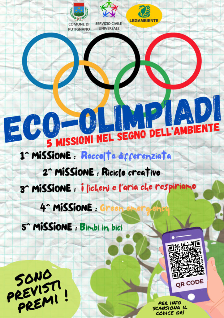 A voler bene all’ambiente si comincia da piccoli. Nascono le “Eco Olimpiadi” del Comune di Putignano, 5 missioni per sensibilizzare i bambini al rispetto del mondo che ci circonda, aumentare la consapevolezza sul tema dei rifiuti, promuovere la mobilità sostenibile attraverso il gioco.