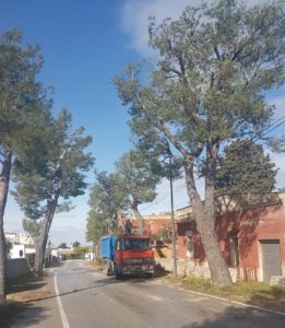 In particolare, si stanno effettuando interventi di potatura dei pini e dei cipressi presenti sulle strade di competenza comunale e nella zone extraurbane (in contrada Virbo e in contrada Sicarico).