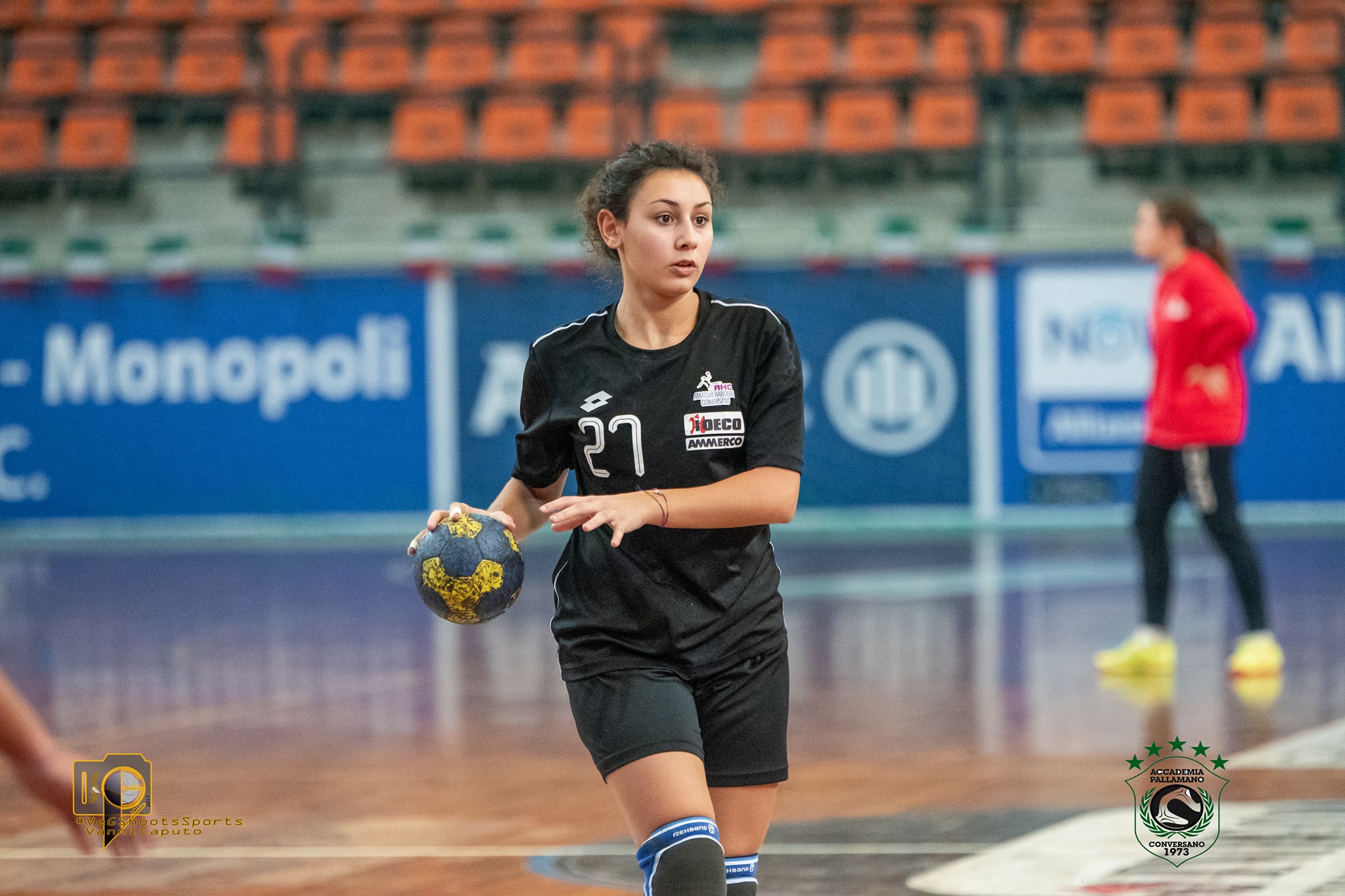Indispensabili, allora, saranno anche le reti di Sara, che ci racconta come si è innamorata della pallamano: “Devo molto del mio amore per la pallamano a mio fratello che mi ha spinto a praticare questo sport. Cinque anni fa ho iniziato a giocare in una squadra mista a Fasano per poi trasferirmi, l’anno dopo, qui a Conversano dove ho trovato un gruppo di compagne unite sia in campo che fuori. Per me questa è come una famiglia ormai”.