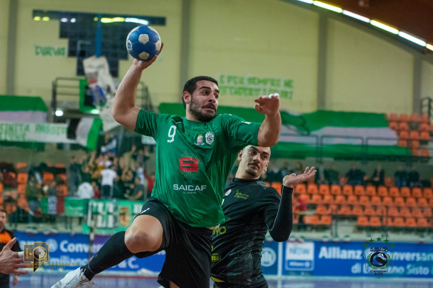 Il finale è thriller; con il risultato di parità il Conversano ha la palla della vittoria ma a capitan Giannoccaro non viene fischiato un possibile 7 metri e sul ribaltamento di fronte, dopo il time out chiamato da Branko Dumnic, arriva la rete sulla sirena da parte di D’Antino. I signori Cosenza e Schiavone non convalidano per cui il tabellone recita 25-25.