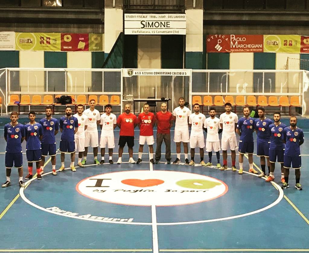 CONVERSANO (Bari) – Settimana di riposo inaspettata per gli Azzurri Conversano. Causa indisponibilità del PalaTifo di Castellaneta Marina, infatti, il match tra i padroni di casa del Real e la banda di mister Gianpiero Giliberti è stata rinviata al 16 ottobre prossimo. Dopo il bel successo ottenuto nell’ultimo incontro disputato con il San Ferdinando, dunque, capitan Renna e compagni saranno costretti ad un sabato di riposo, prima di riprendere la marcia in campionato martedì prossimo in occasione del turno infrasettimanale con la Gioco Calcio tra Amici di Taranto.