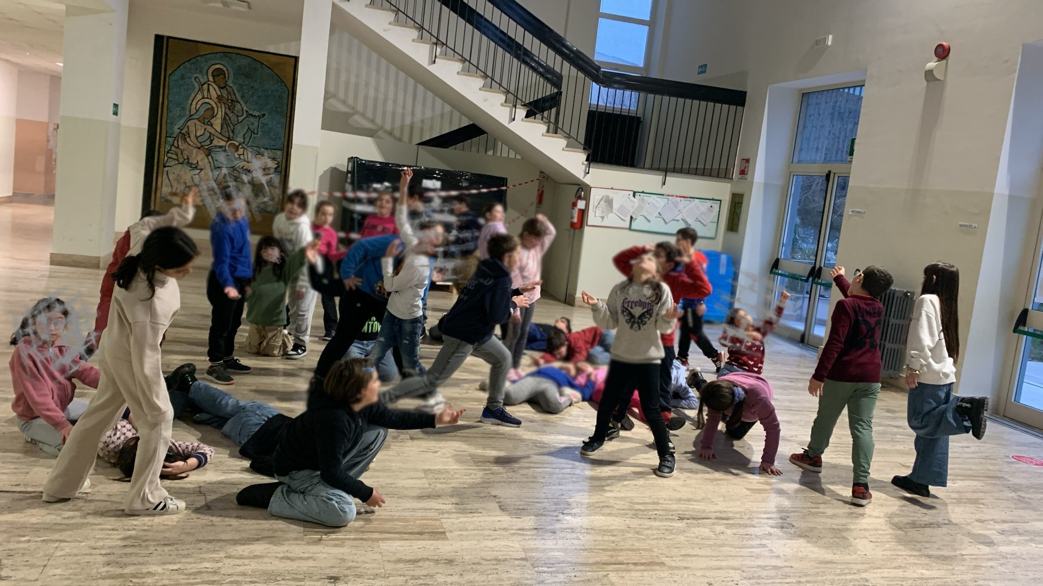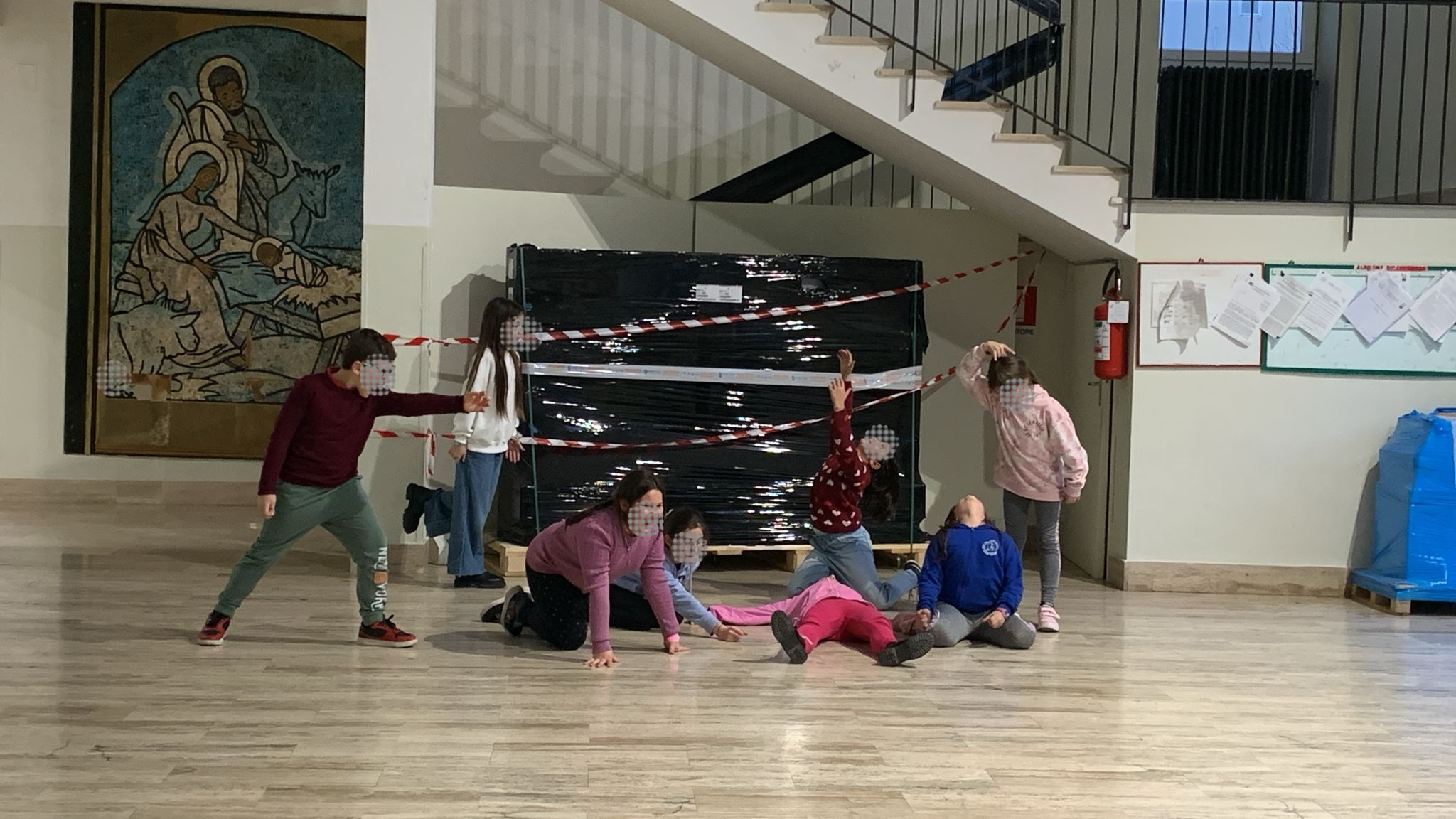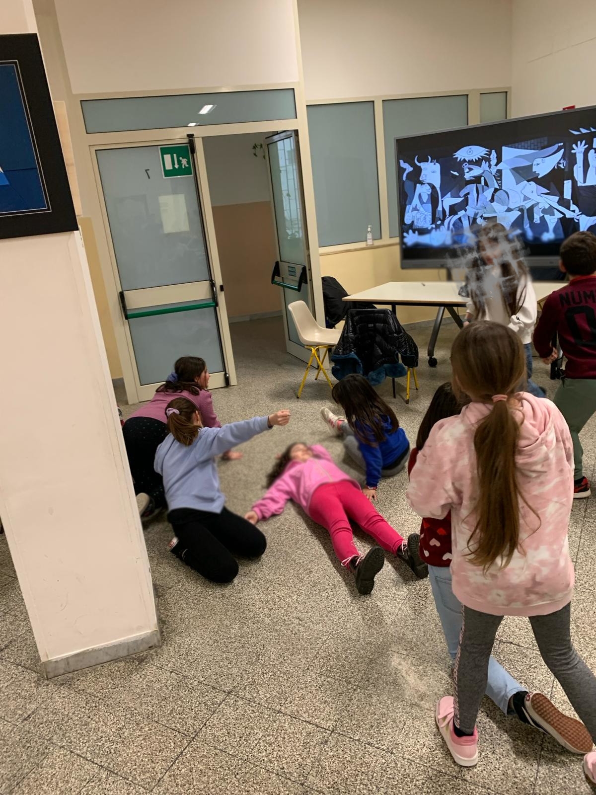 Così facendo gli alunni hanno intrapreso un percorso esperienziale molto suggestivo. Il regista ha presentato loro il dipinto di Guernica, la nota tela di Picasso che raffigura il bombardamento della città di Guernica. Un dipinto significativo e senza tempo per riflettere sul valore della pace e della tolleranza in modo diverso. Gli alunni hanno rappresentato fisicamente alcune scene. Questo, inoltre, diventerà la scenografia della rappresentazione teatrale di fine modulo, reinterpretata dagli alunni con la guida dei docenti della scuola media secondaria di primo grado, Ornella Palmitessa Vitantonio Colavitti.