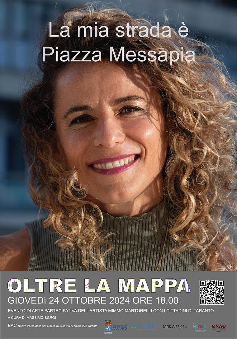 Dalle 16 alle 17, presso l’ex Convento Sant’Antonio, talk “Il City Competent vede Oltre la Mappa”, nell’ambito della MAS Week, con la presidente Ipacs Francesca Cioffi e l’assessore alla cultura del comune di Taranto, Angelica Lussoso.