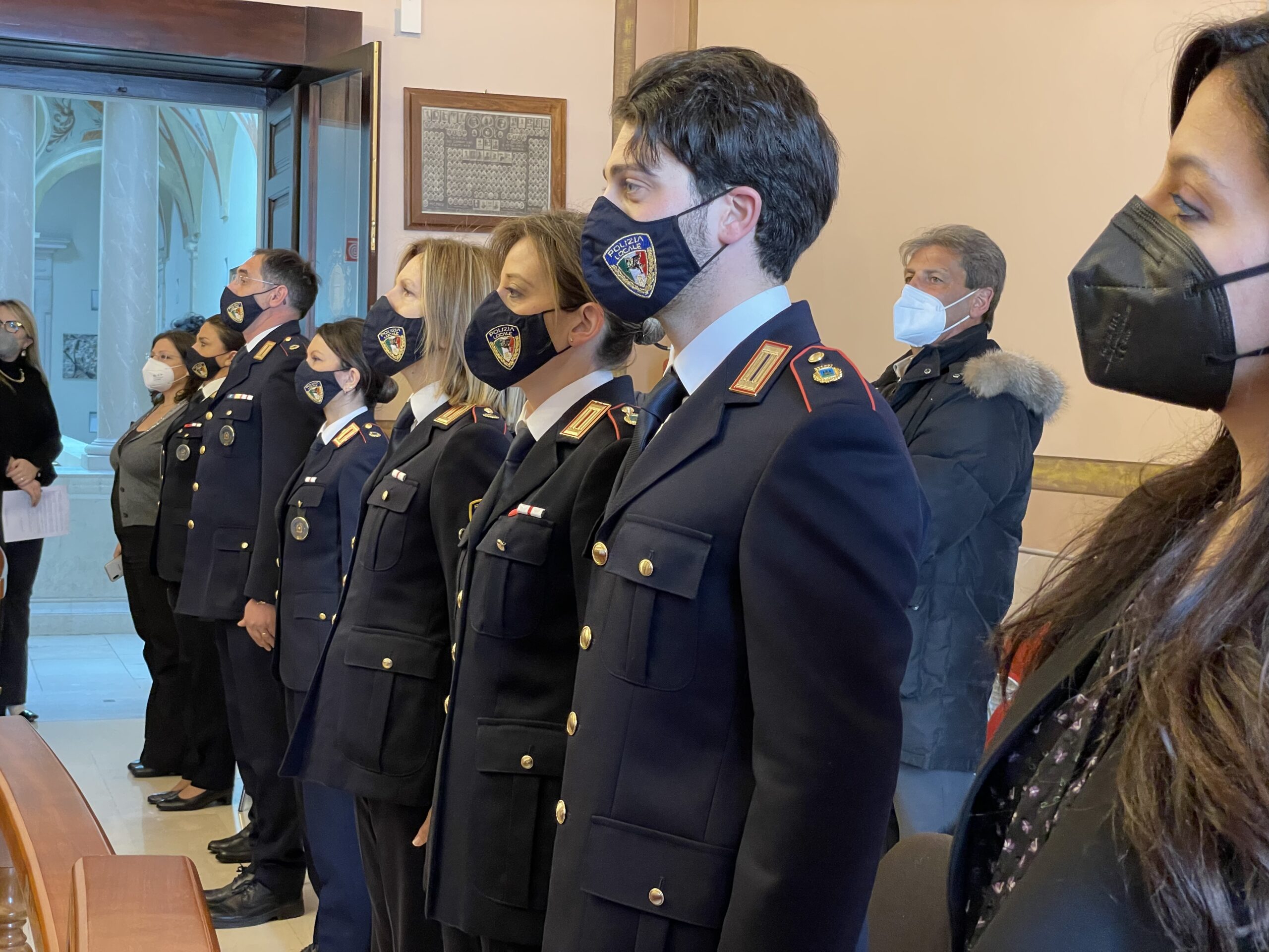 Durante la cerimonia sono stati assegnati quindi i gradi di Commissario Superiore al comandante dott. Oronzo Cisternino; i gradi di Sovrintendente Capo a Marilena Mastronardi; i gradi di Sovrintendente a Rosa Biasi e Simone Bruno; i gradi di Vice Sovrintendente a Angelica Colucci; i gradi di Agente Scelto a Tiziana Lacriola e Maria Luigia Ivone; il grado di Agente a Mirco Marangi.