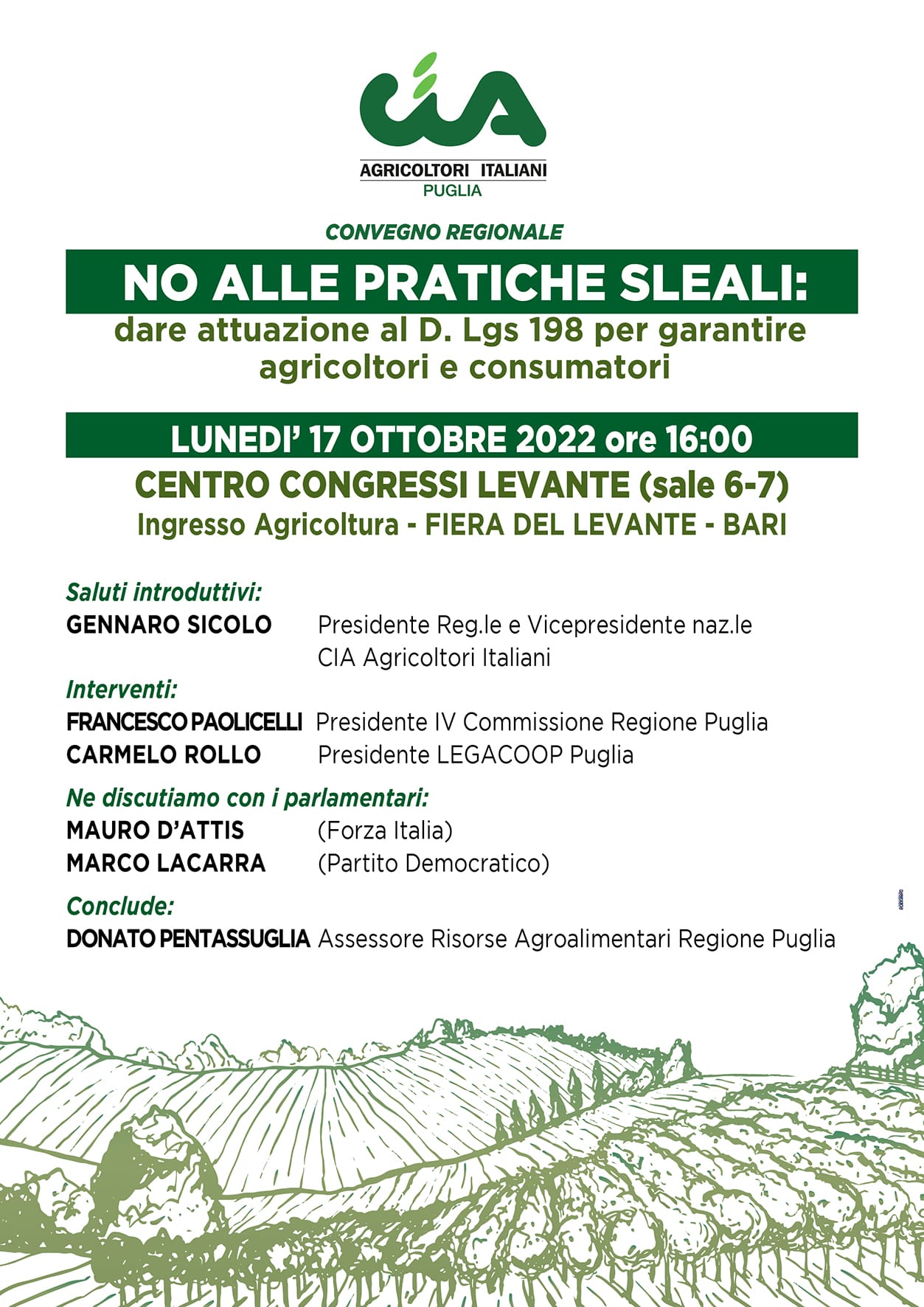 Bari. «No alle pratiche sleali – Dare attuazione al Decreto Legislativo 198 per garantire agricoltori e consumatori».