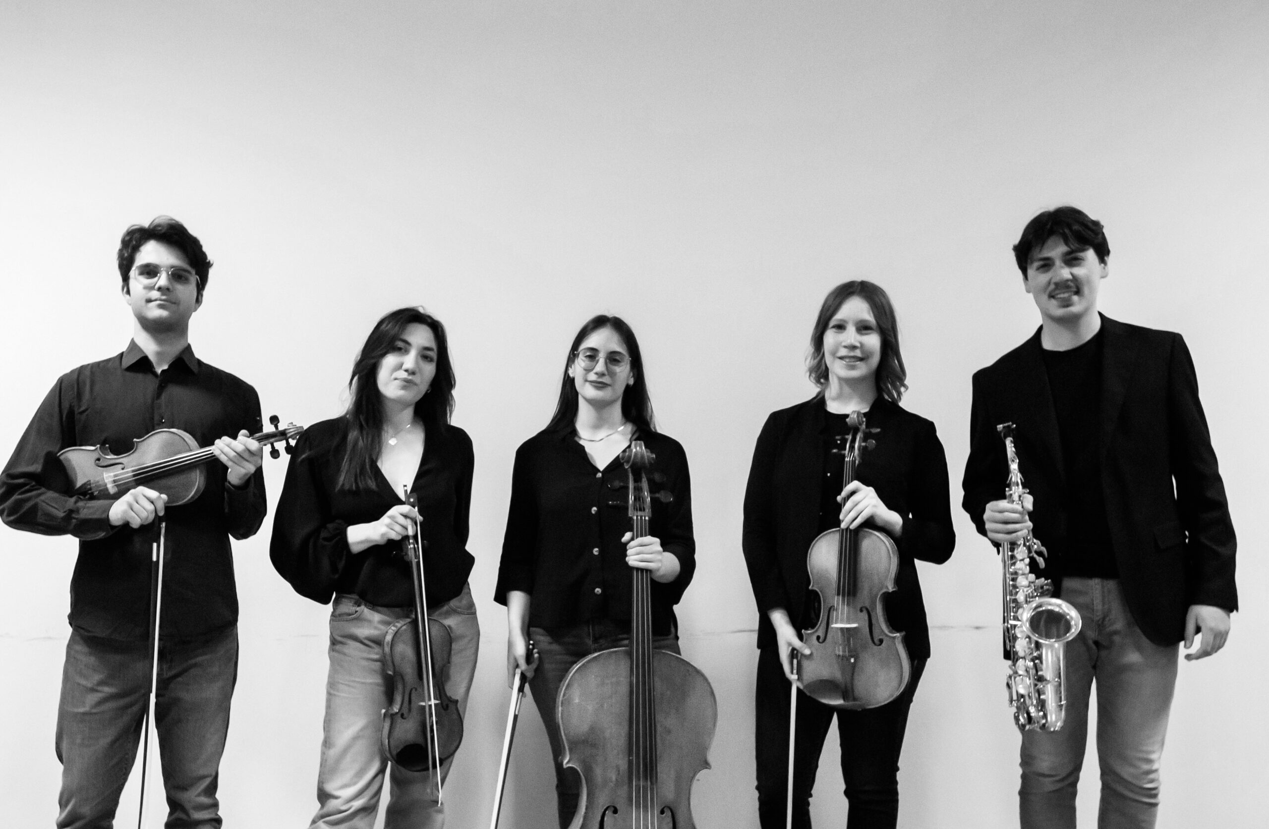 Il gruppo nasce nel 2023 dall’esigenza di voler condividere un percorso musicale di quotidianità ed ascolto reciproco, dove incontrarsi diviene una occasione d’arricchimento e la condivisione una via per conoscere e superare insieme i propri limiti. L’insolita formazione accosta il classico organico del quartetto d’archi al saxofono, creando una spiazzante sinergia di suoni e timbri che non pochi compositori, a partire dal primo ‘900, hanno scelto per dare voce alle loro opere. I componenti, diplomati presso il Conservatorio “U. Giordano” di Foggia, si specializzano in Italia ed all’estero in prestigiose istituzioni musicali come l’Accademia di Santa Cecilia a Roma, l’Accademia di Pinerolo, ricoprendo inoltre il ruolo di docenti e tutor presso istituti secondari ad indirizzo musicale. Sono vincitori di numerosi concorsi nazionali ed internazionali e si esibiscono in prestigiose rassegne concertistiche, tra cui Agimus, Le concerts de Saint Marry, Young Euro Classic, Roma festival barocco. Collaborano con l’Orchestra del Teatro Petruzzelli di Bari, l’Orchestra del Teatro olimpico di Vicenza OTO, l’Orchestra ICO Suoni del Sud, l’Orchestra Giovanile Italiana OGI, i Solisti Aquilani, l’Orchestra del Cnsm di Parigi.
