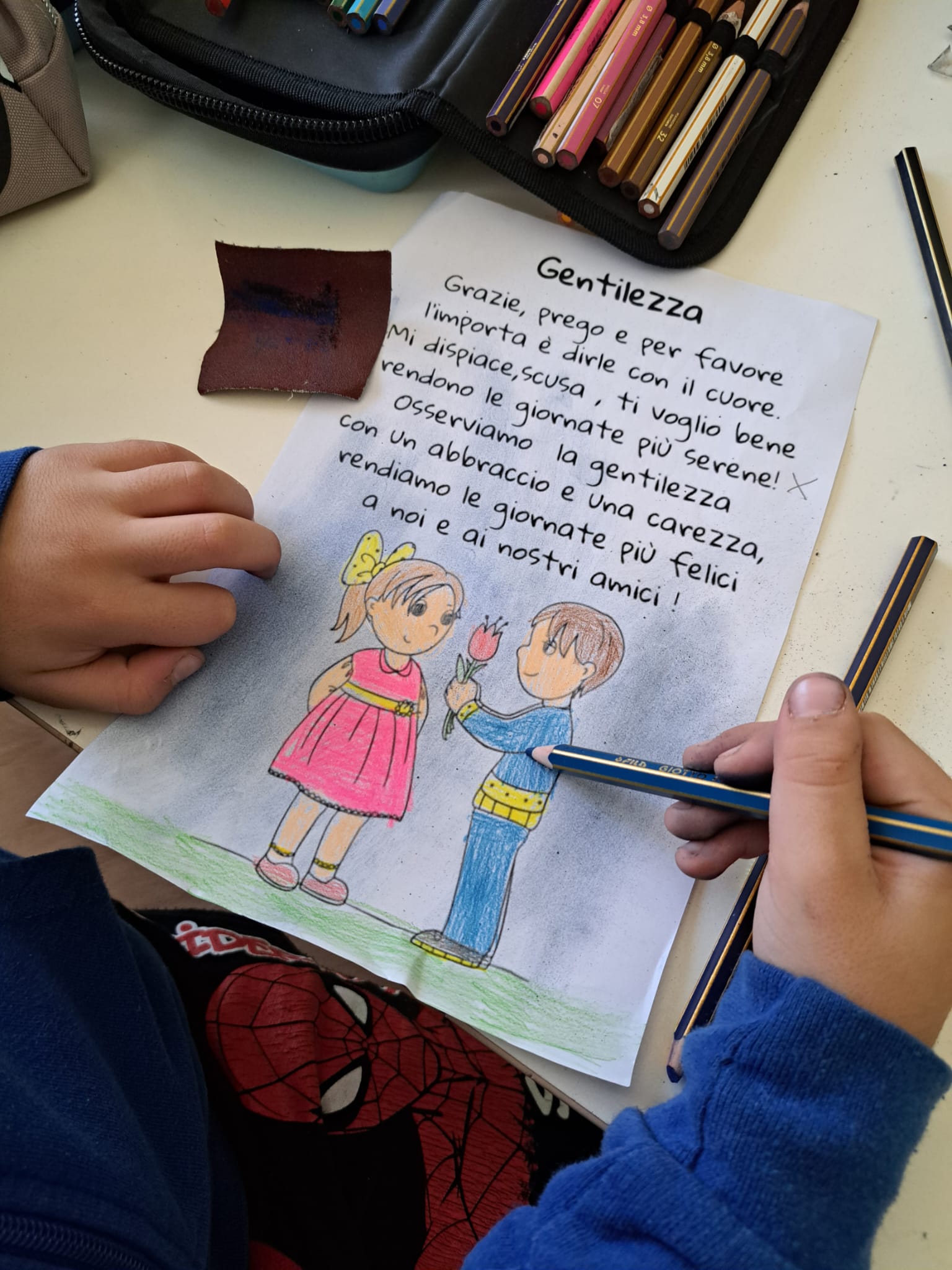 Castellana Grotte (Bari) – Giornata mondiale della gentilezza. Il 13 novembre è passato ma tra i banchi della scuola primaria dell’Istituto Tauro-Viterbo le parole gentili – grazie, prego, scusa… trovano ogni giorno il giusto spazio. Attività manipolative, coloritura e piccoli lavoretti per sorridere tutti insieme e non dimenticare che basta poco per essere gentili.