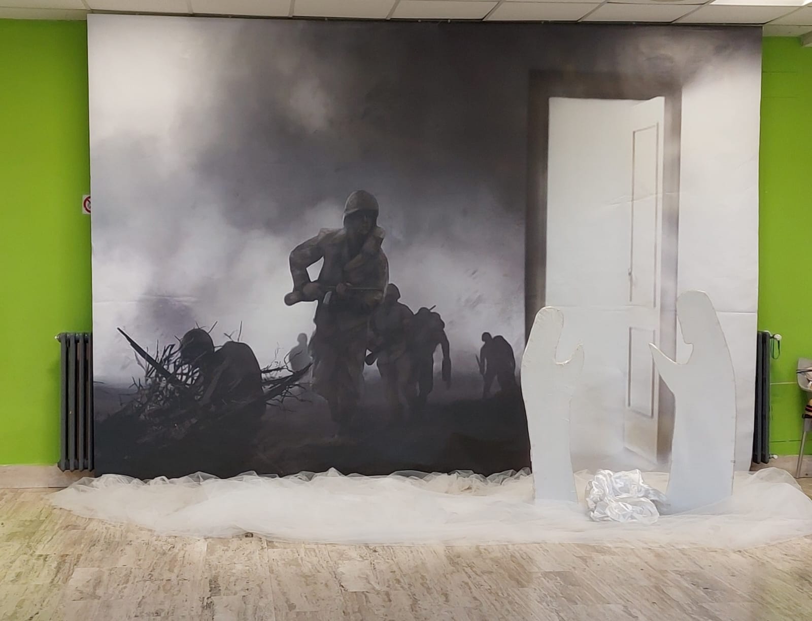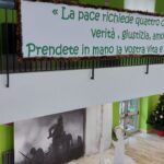 Di grande impatto il Presepe realizzato nell’atrio della scuola dalle classi 3^, plesso Tauro. E’ il bianco della Natività simbolo di luce: riflette l’unica forza ammessa dalla cristianità. L’amore. Una forza che si oppone alla guerra che, nonostante gli appelli dei grandi del Mondo, continua a mietere vittime. Le due piccole e semplici figure di cartone, la Madonna e San Giuseppe, pur non essendo delineate da volti restano impresse negli occhi dell’osservatore per il loro valore simbolico: è una famiglia che resiste alle difficoltà e alle atrocità della guerra, rappresentata scenograficamente dal fondale che non ha bisogno di essere spiegato. In allegato la foto.