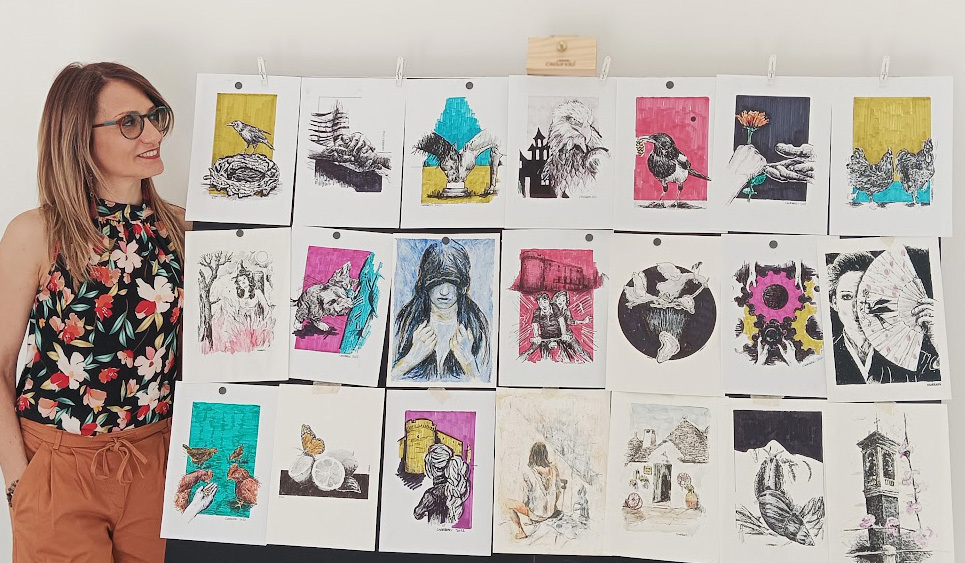 Il visitatore potrà ammirare opere originali create non solo con l’inchiostro, la matita, l’acquerello, il tratto pen e l’acrilico, ma anche con materiali di scarto.