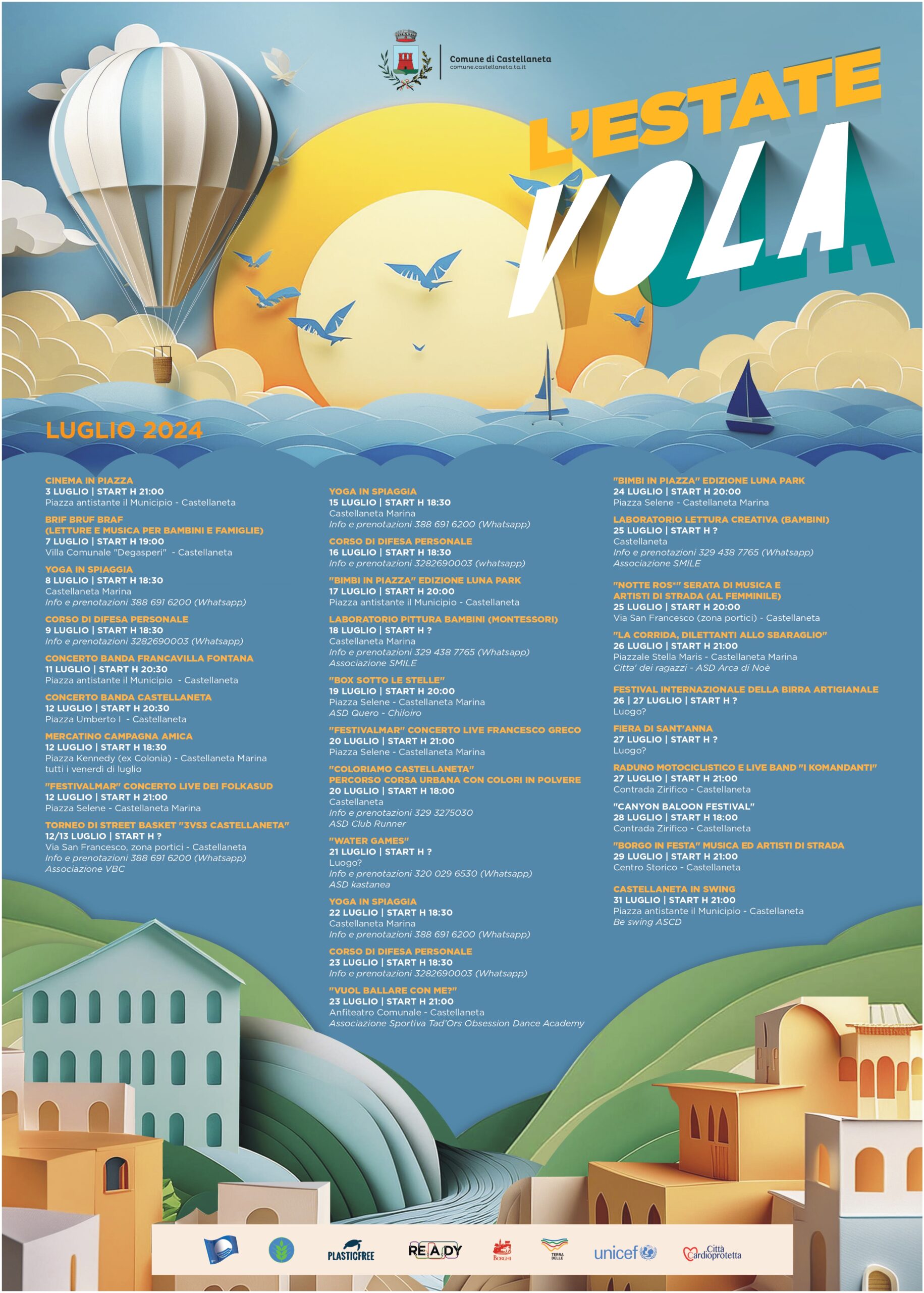 L’Amministrazione Comunale, in collaborazione con il DUC di Castellaneta e alcune associazioni di Castellaneta, sta piano piano svelando quello che si presenta come un ricco e ampio programma con il cartellone estivo “L’Estate vola”, già partito nel mese di giugno e che terminerà a settembre inoltrato.
