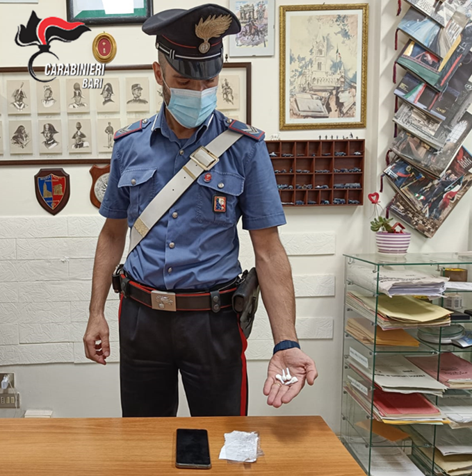 Toritto (BA): va in giro con la cocaina nel risvolto della maglietta. Arrestato dai Carabinieri un 52enne del posto.