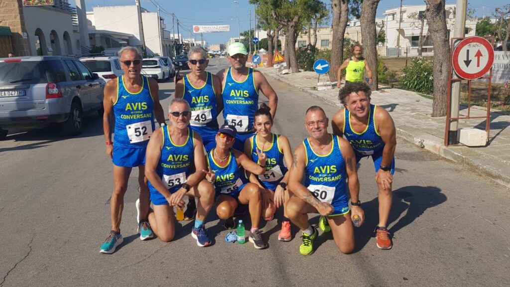 Conversano (Ba) – Il caldo e l’estate non placano la voglia di running dei podisti dell’Avis in Corsa Conversano che nelle ultime settimane sono stati protagonisti alle gare di Montescaglioso e Marina di Carovigno. In terra lucana erano presenti ben sette atleti biancoazzurri i quali hanno preso parte alla seconda edizione del “Giro dell’Abbazia” gara competitiva di circa 10 chilometri valida come 6^ prova del circuito regionale “Lucania Run 2023” e caratterizzata da un percorso con un continuo alternarsi di brevi salite, gradini, curve ed impegnativi tratti in discesa, ricavato nel suggestivo centro storico di Montescaglioso. Luca Mancini, Antonio Palazzo, Rino Lorusso, Giovanni Bianco, Antonio De Nicolò, Mario Renna e Vito Locaputo gli atleti avissini che si sono presentati ai nastri di partenza dell’evento con quest’ultimo in grado di confermare l’eccellente stato di forma in virtù del quinto posto assoluto e terzo nella categoria SM35. Si è tenuta domenica scorsa nel cuore del Salento, invece, la diciottesima edizione del “Trofeo delle due Torri”, chiaro riferimento a Torre Guaceto e Torre Santa Sabina, di fatto emblemi della manifestazione. Marino Daniele, Antonio De Nicolò, Terry Donghia, Giovanni Manco, Vito Domenico Pace, Mario Renna, Rita Solfrizzi e Rino Lorusso si sono cimentati con un percorso affascinante e reso suggestivo dall’ambiente circostante, immerso in una natura incontaminata. Ottima in particolare la performance di Terry Donghia che ha chiuso la propria gara al terzo posto nella categoria SF, mentre ha di poco sfiorato il podio Marino Daniele giunto quarto nella categoria SM70. Bene anche Giovanni Manco, primo avissino a tagliare il traguardo in poco meno di un’ora e cinque minuti. Da segnalare anche la presenza di Giovanni Bianco a Montefiascone, in provincia di Viterbo, per la tredicesima edizione di “Una corsa per la Vita”, gara benefica disputata in notturna su percorso cittadino di otto chilometri.
