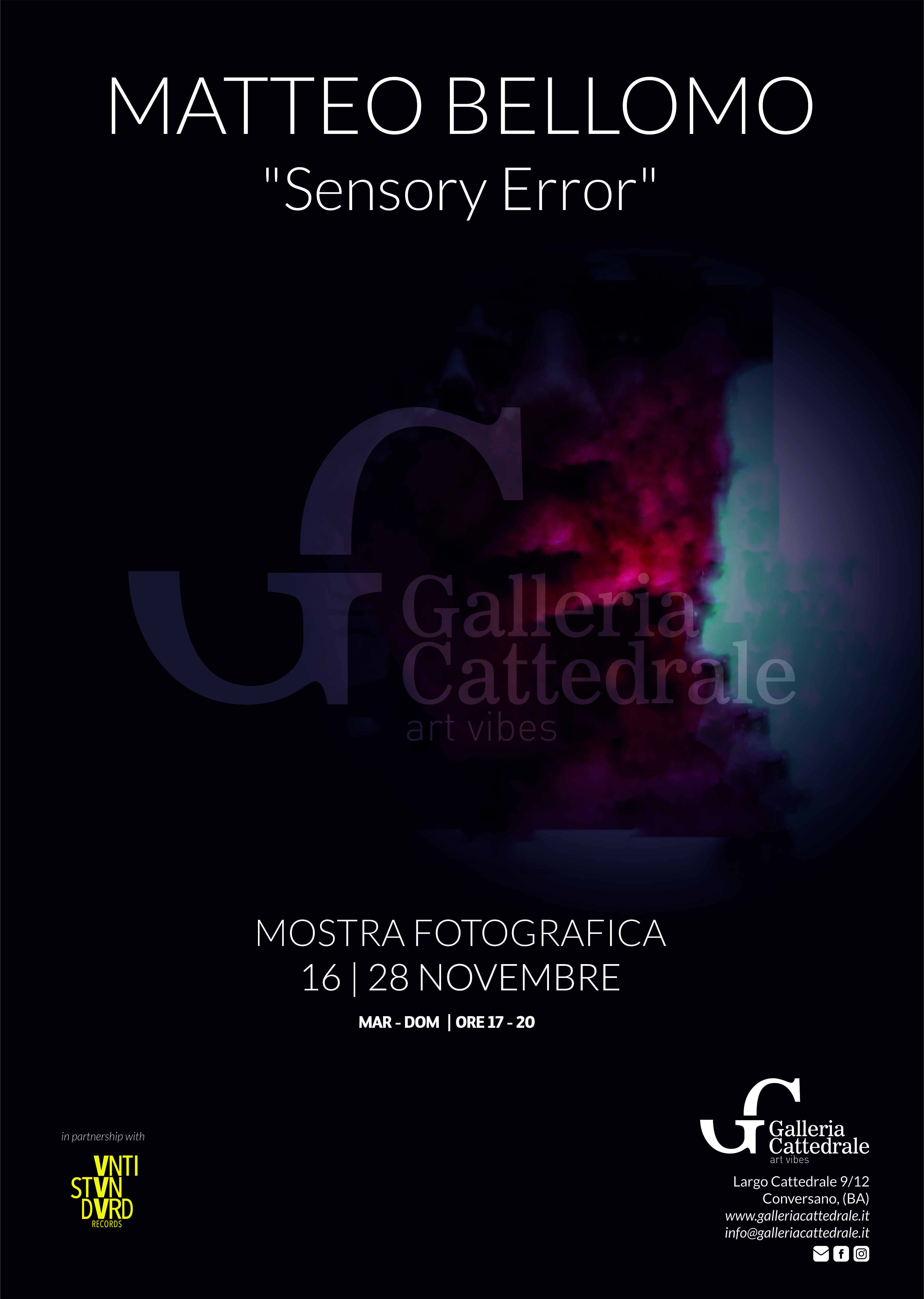 E’ il caso della Galleria Cattedrale, elegante spazio espositivo inaugurato soltanto pochi mesi or sono proprio di fronte la Basilica di Conversano, che venerdì 16 novembre apre al pubblico le sue sale presentando la mostra fotografica “Sensory error”.